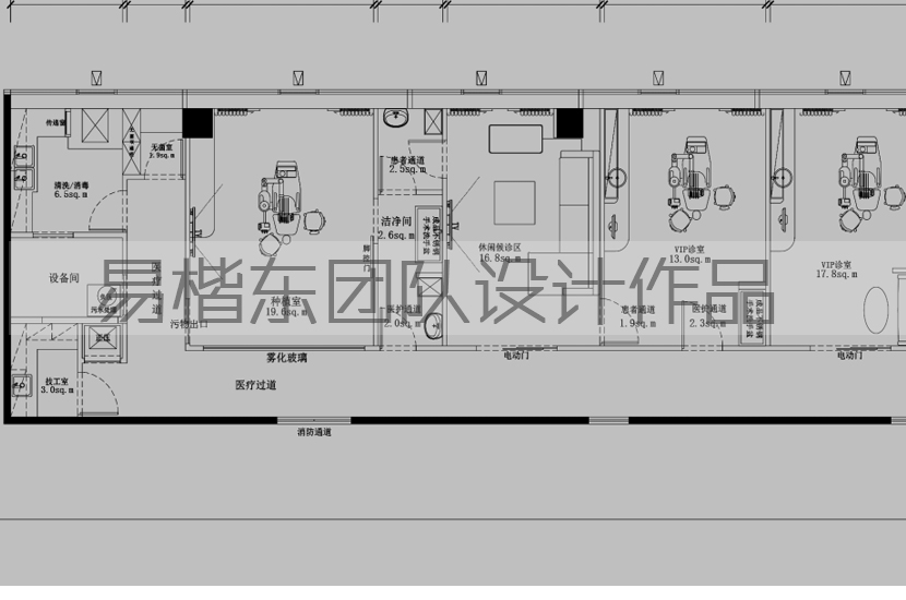 過道區(qū)域,縱深的延伸距離,拉長了空間的長度,簡約而不單調,簡單的底色布設顯得干凈而大方。幾幅壁畫的點綴,讓整體區(qū)域有了色彩的跳動與活力。玻璃墻將每一個就診區(qū)域獨立的間隔開,既考慮了私密性,又保全了空間的專屬性。